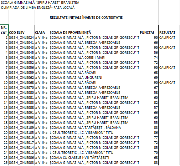 - Rezultatele obținute la fiecare probă a concursului se afișează la sediul unității de